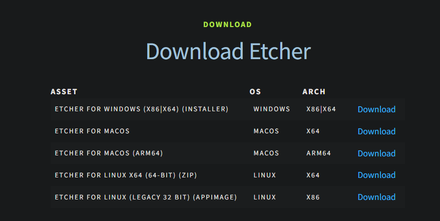 - Navigate here and download Balena Etcher. This is a tool that runs on Windows, macOS and Linux that you will use to write the Proxmox VE ISO installer file to your USB flash drive: