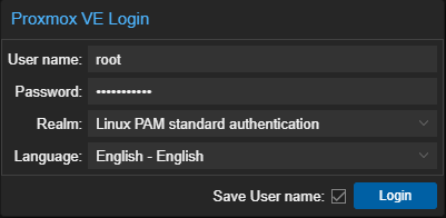 - Log into the web interface by entering the username “root”, along with the password you set during the installation process.